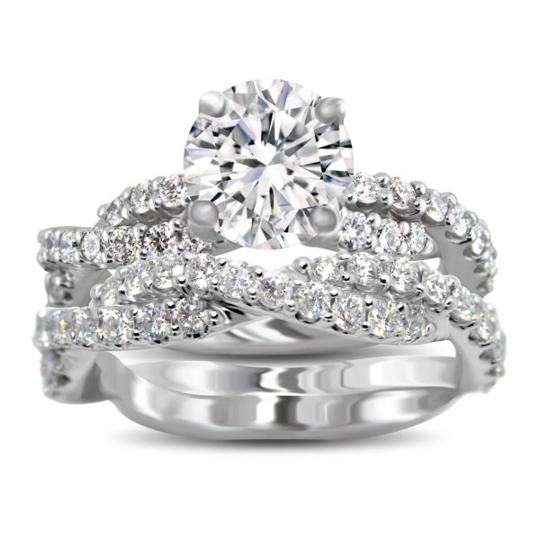 4 Prong Engagement Bridal Set, Gold or Platinum