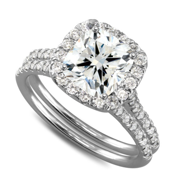 2 reviews for Cushion Halo Engagement and Matching Wedding Band Bridal Set