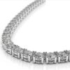 This is a Genuine Diamond Ladies Tennis Necklace.  It has a CTW of  7.15CT , 9.45CT, 12.00CT, 16.80CT , 20.40CT, 24.00CT, 26.40CT , 29.75CT, 32.00CT, 38.00CT diamonds and weighs 27, 24, 26, 31, 31, 40, 40, 44, 48, and 57  grams. Diamonds can have a clarity of VS1 or SI1 and G/H  color. This beautiful custom piece has excellent round cut diamond stones that travel all the way up this tennis necklace with a graduated design. This necklace has a timeless in fashion design that flatters any woman wearing around her neck.