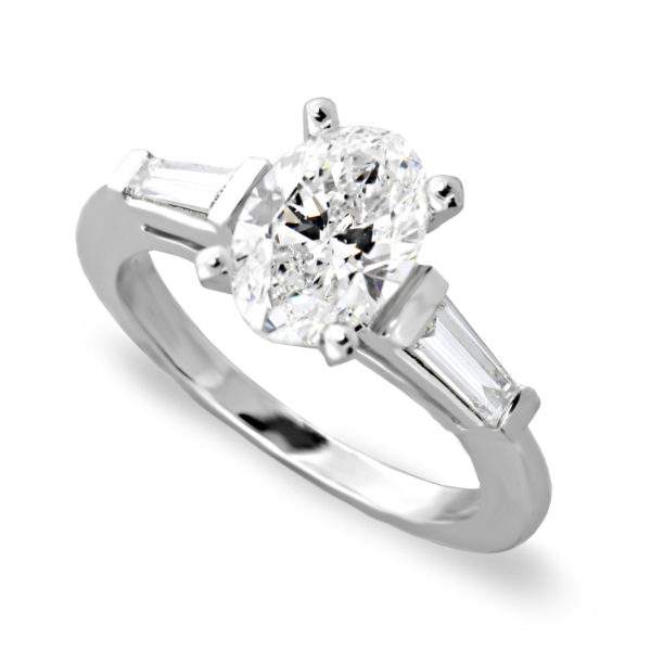 Oval Shape 1.30ctw Diamond Center with 0.30ctw Tapered Baguette Sides Gold & Platinum LR76660D